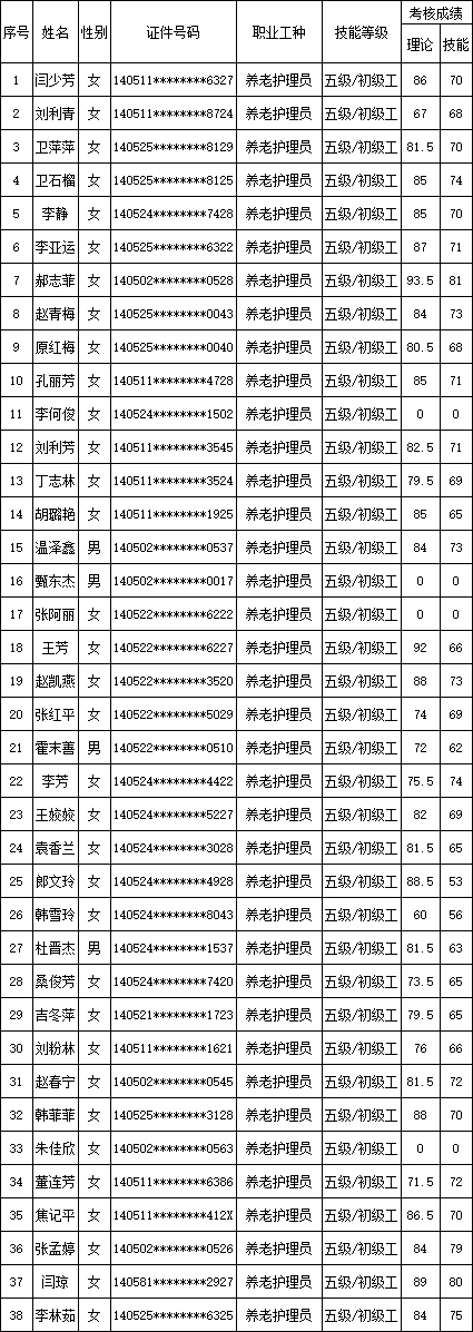 山西潔霸清潔服務集團股份有限公司職業(yè)技能等級認定中心現(xiàn)將2025年11月9日認定人員成績公示如下: